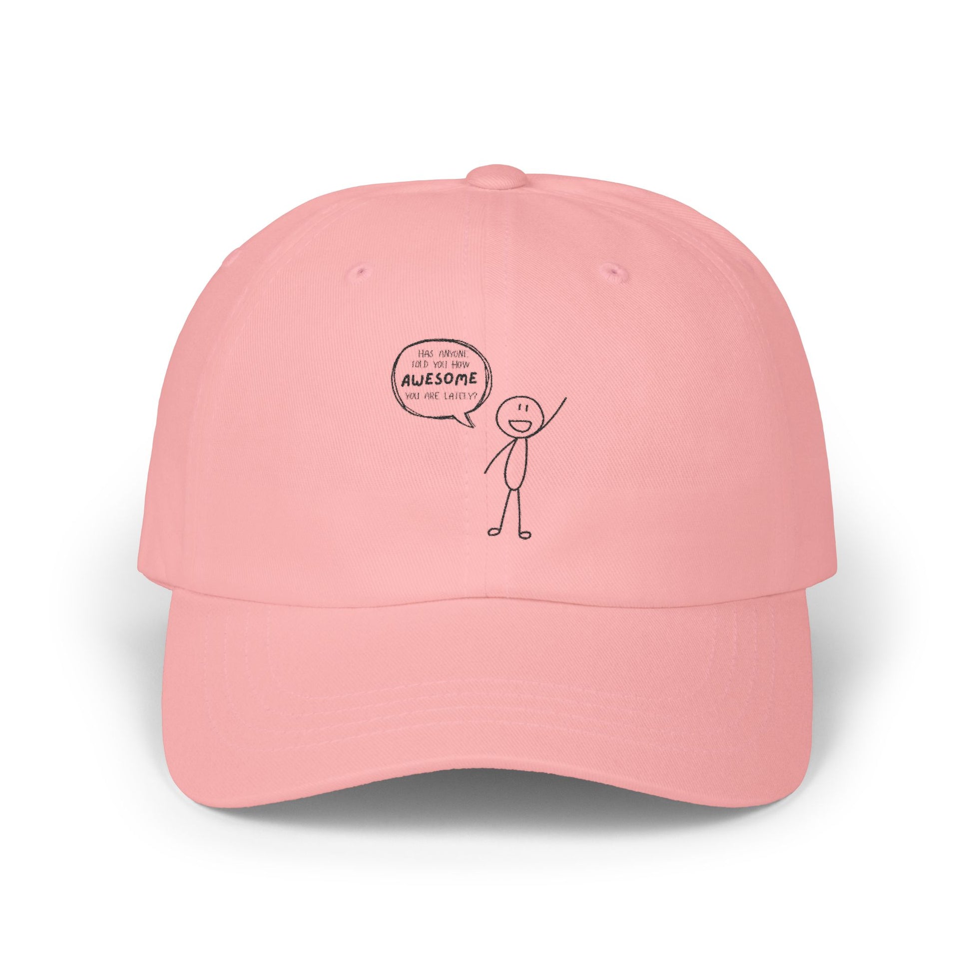 Has anyone told you how AWESOME you are lately? This cap has—and it’s ready to spread the good vibes everywhere you go. With a playful embroidered stick figure and speech bubble, it’s like wearing a pep talk on your head (the good kind, not the cringey kind).
