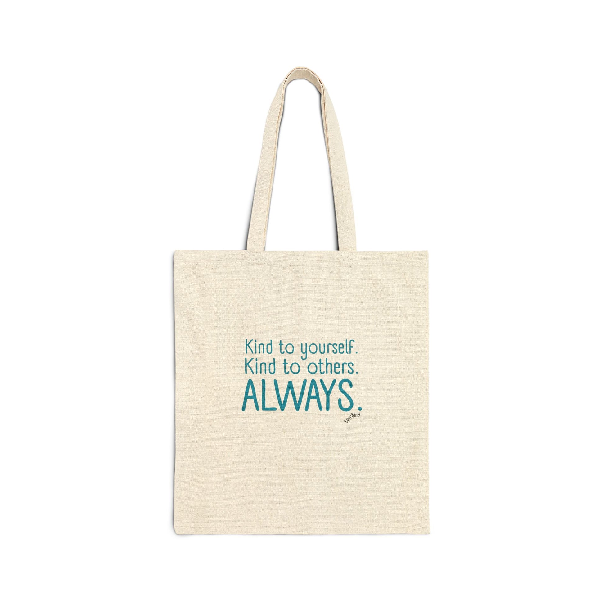 Carry more than just your essentials—carry kindness. This sturdy cotton canvas tote spreads a simple but powerful reminder everywhere you go: Kind to yourself. Kind to others. Always.