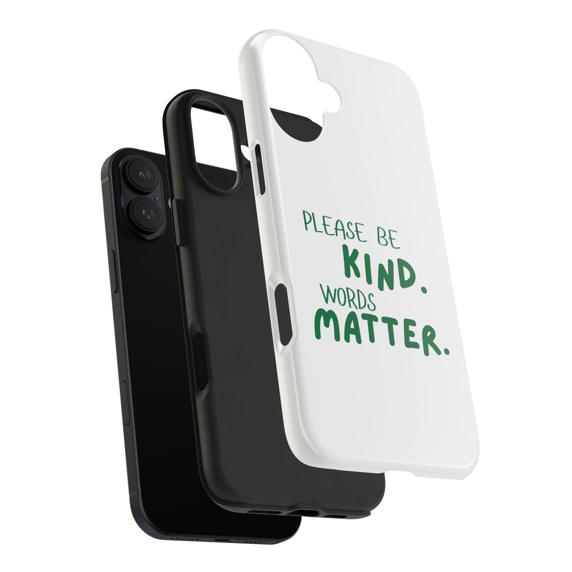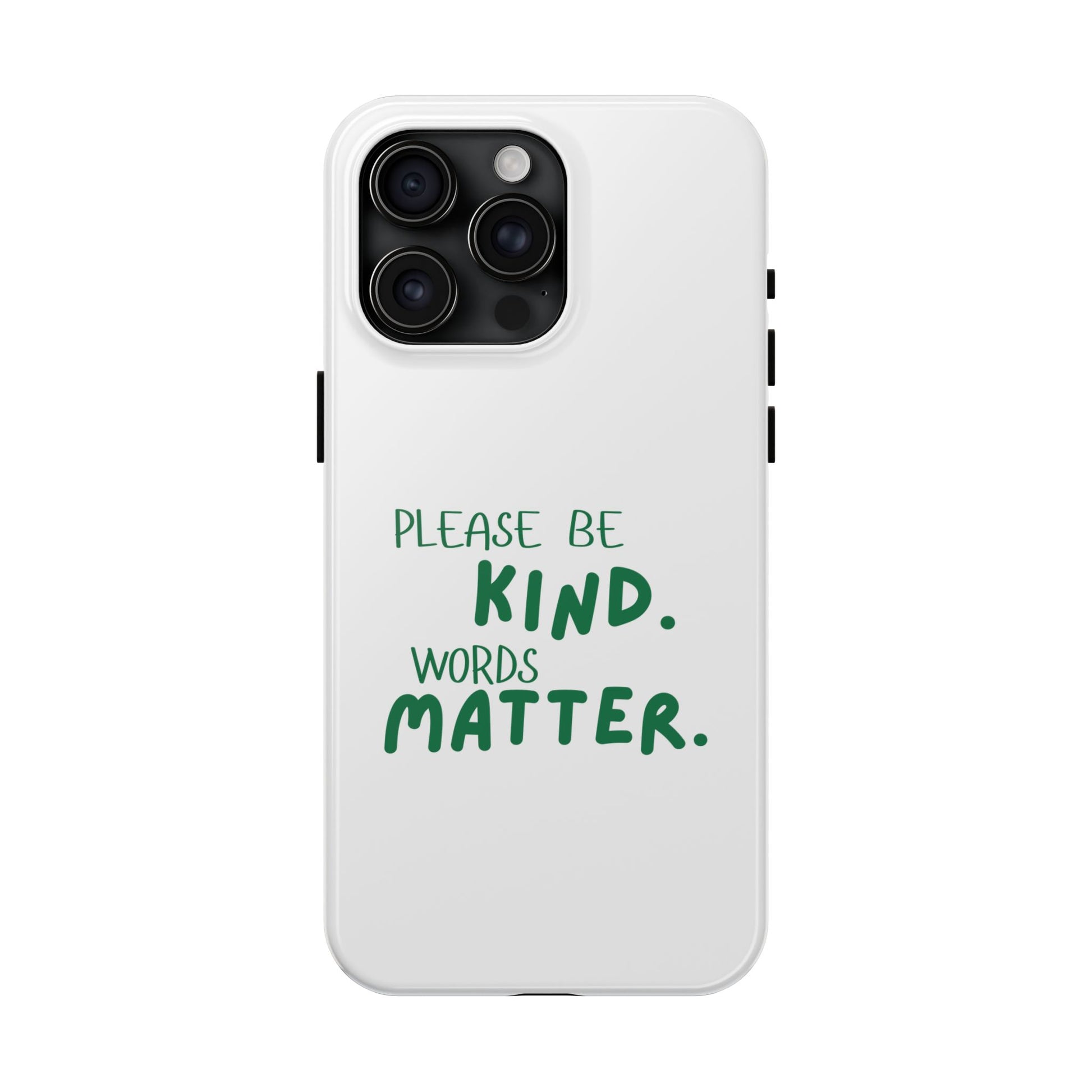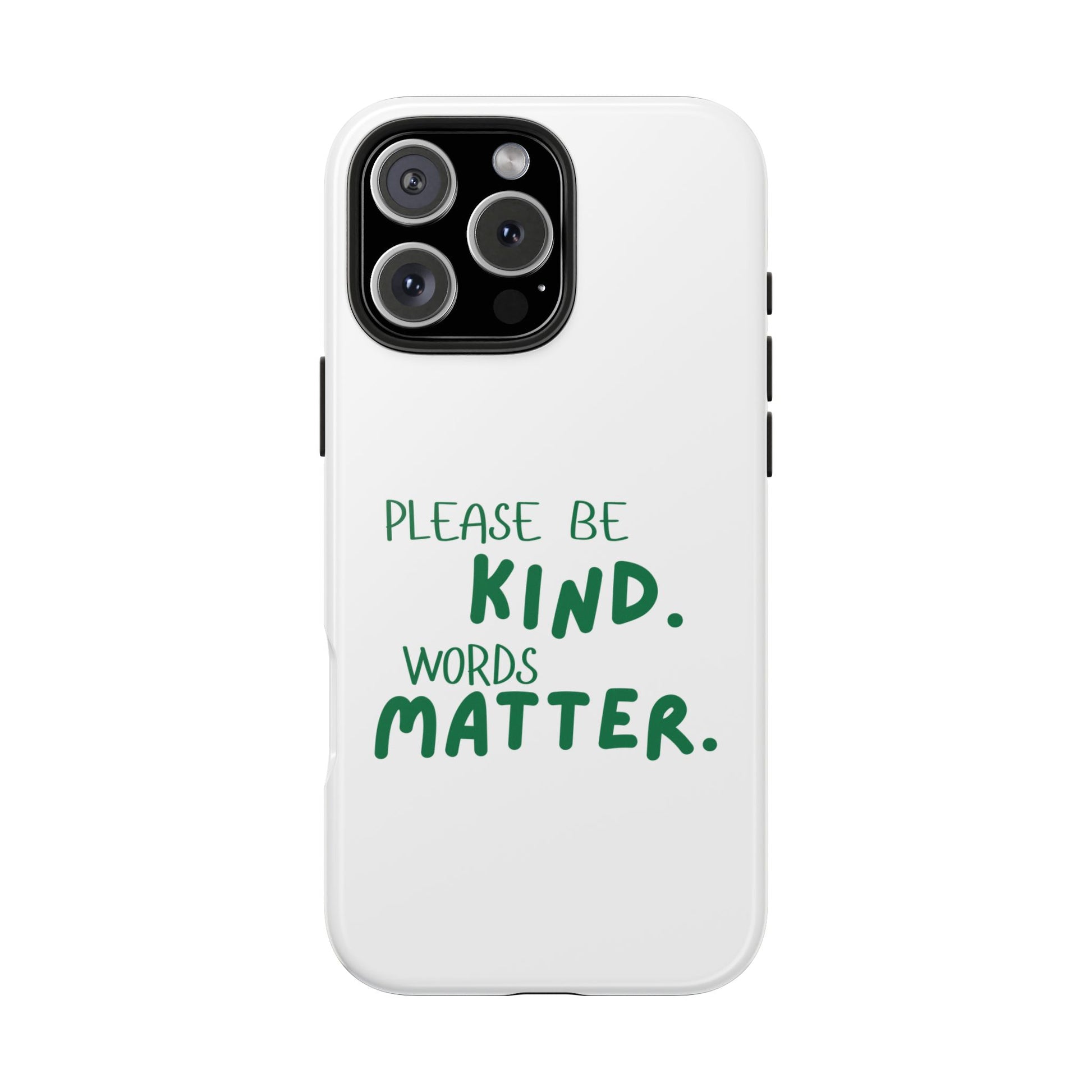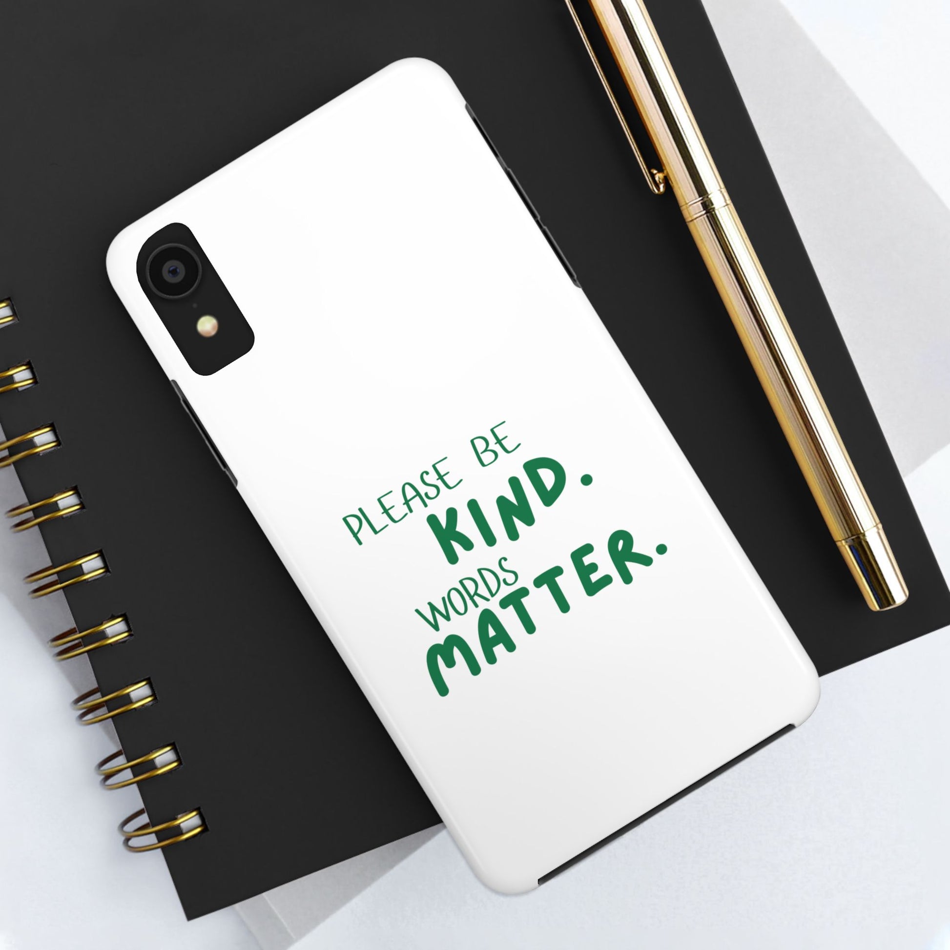 This case doesn’t just protect your phone—it protects the tone of the world around you. Featuring the simple, powerful message “Please be kind. Words matter.”, it is a daily nudge to lead with empathy, speak with care, and make kindness the default.