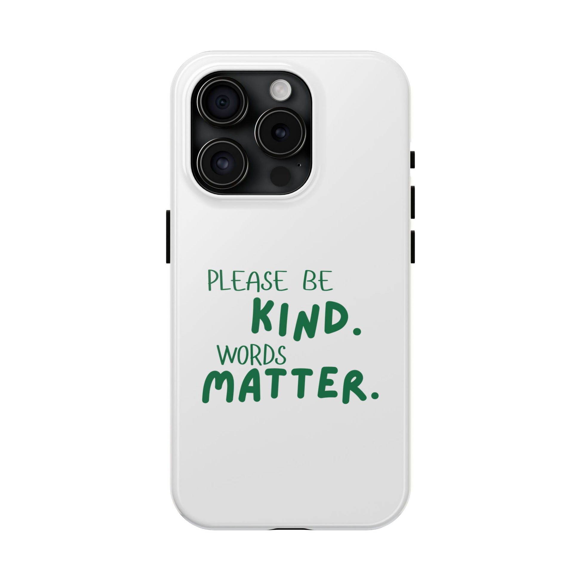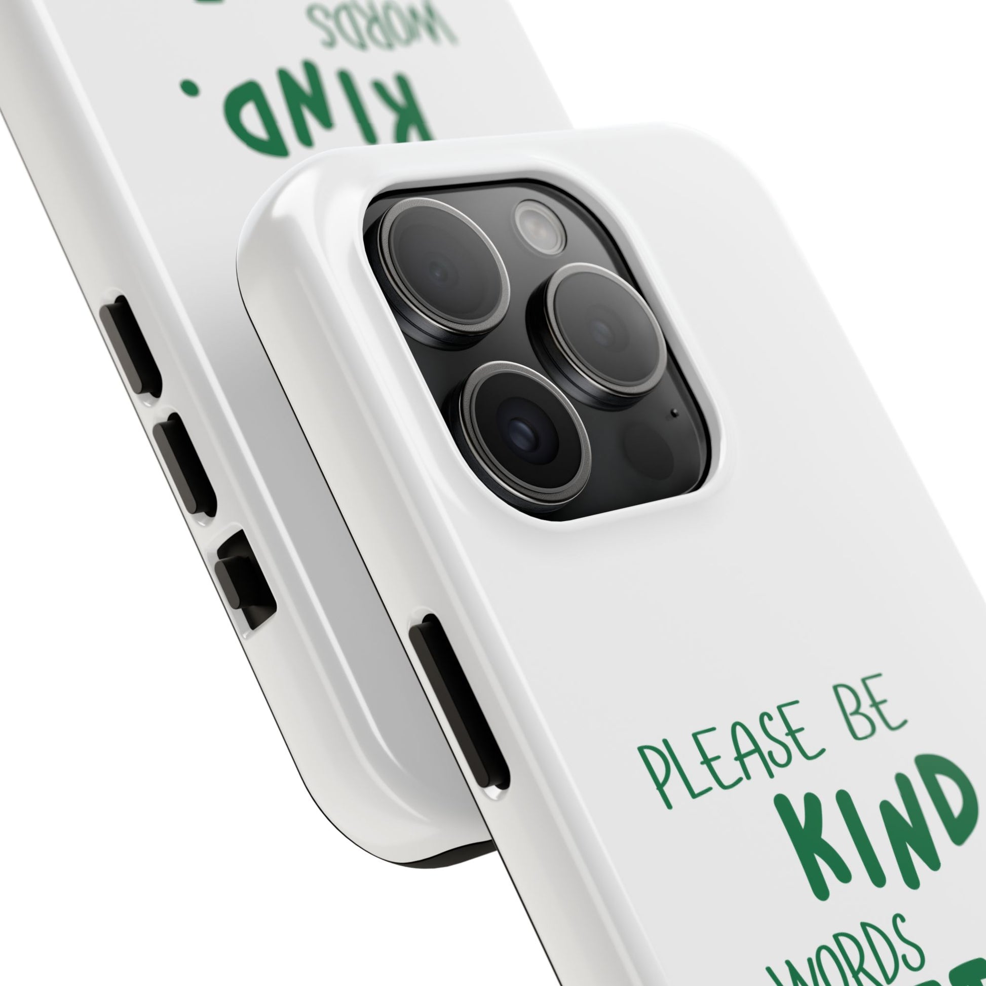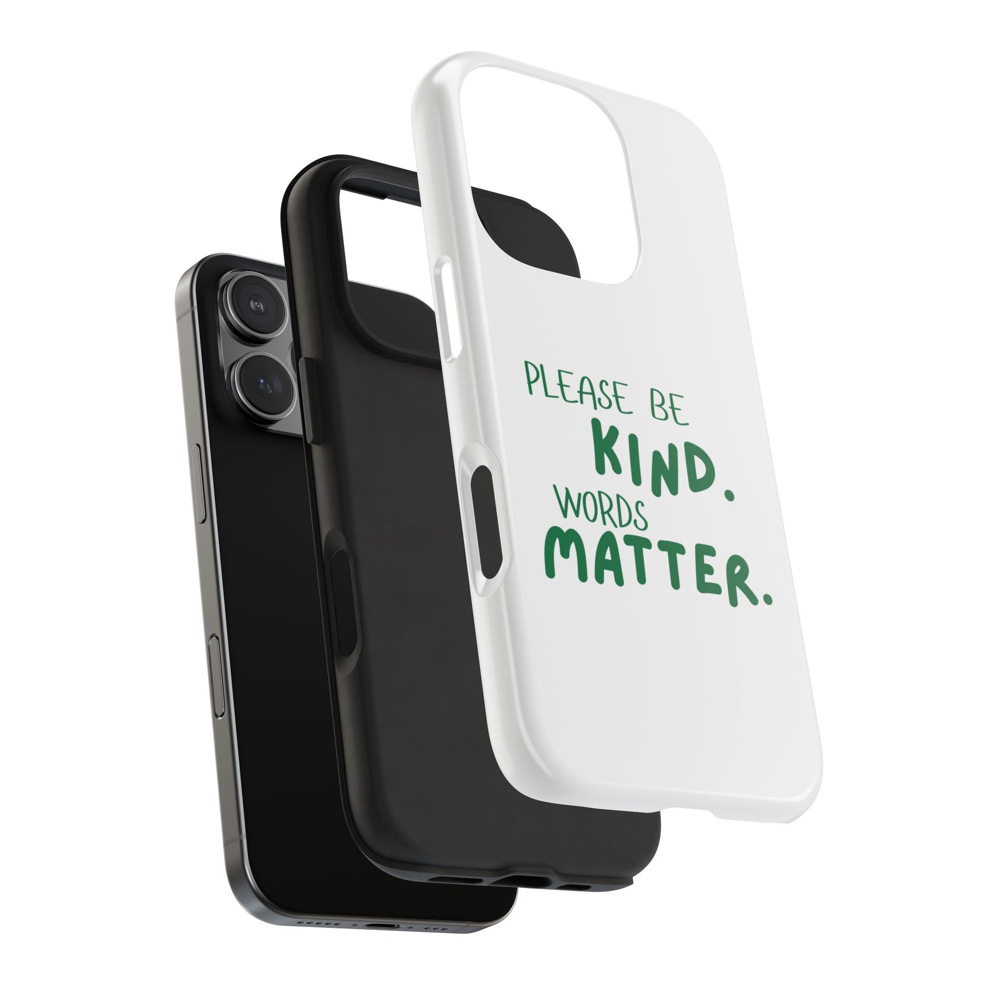 This case doesn’t just protect your phone—it protects the tone of the world around you. Featuring the simple, powerful message “Please be kind. Words matter.”, it is a daily nudge to lead with empathy, speak with care, and make kindness the default.