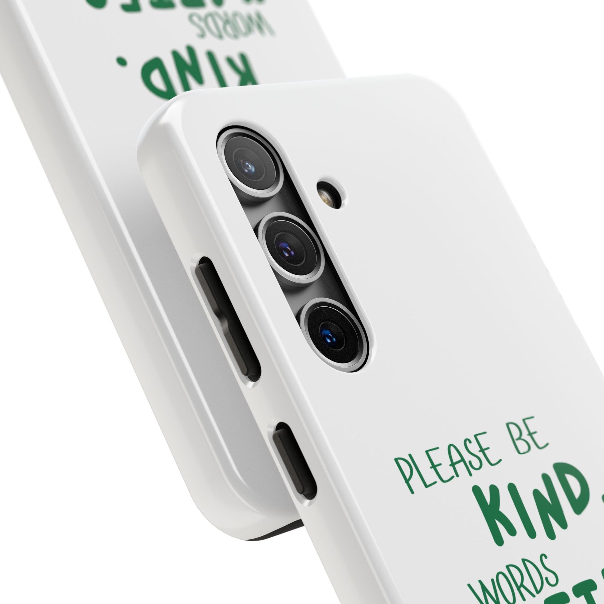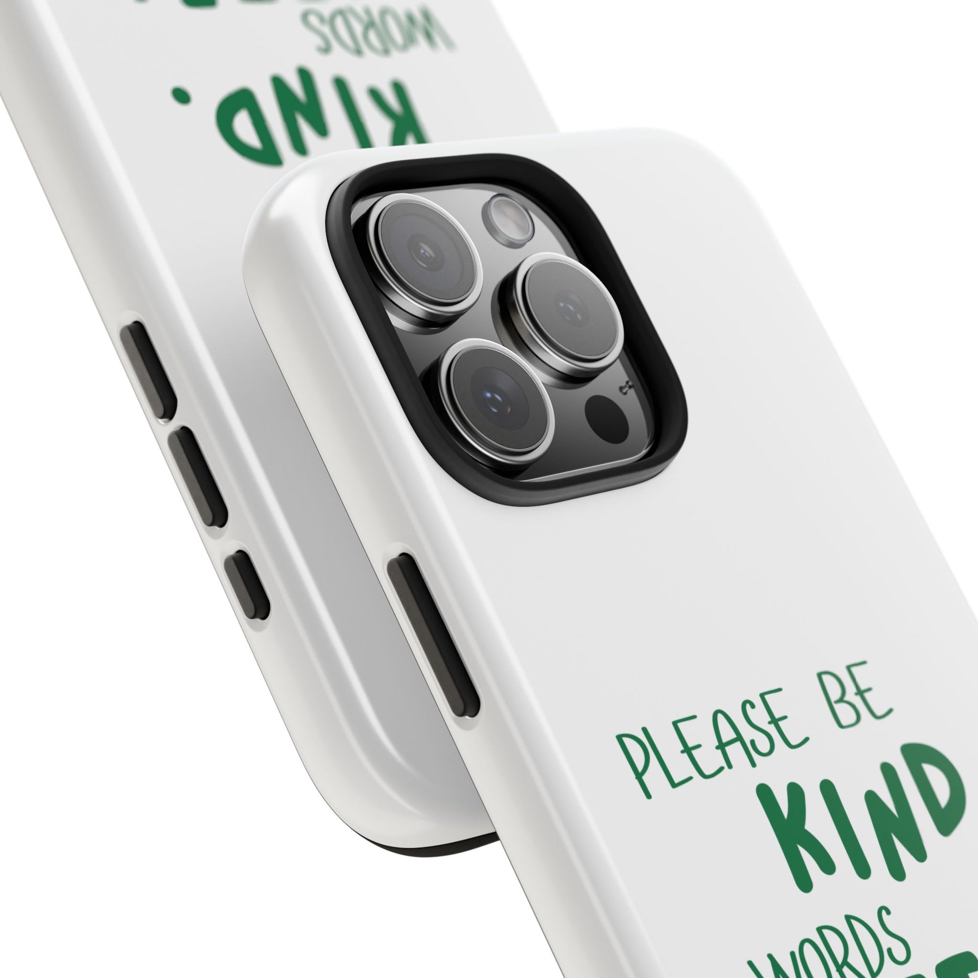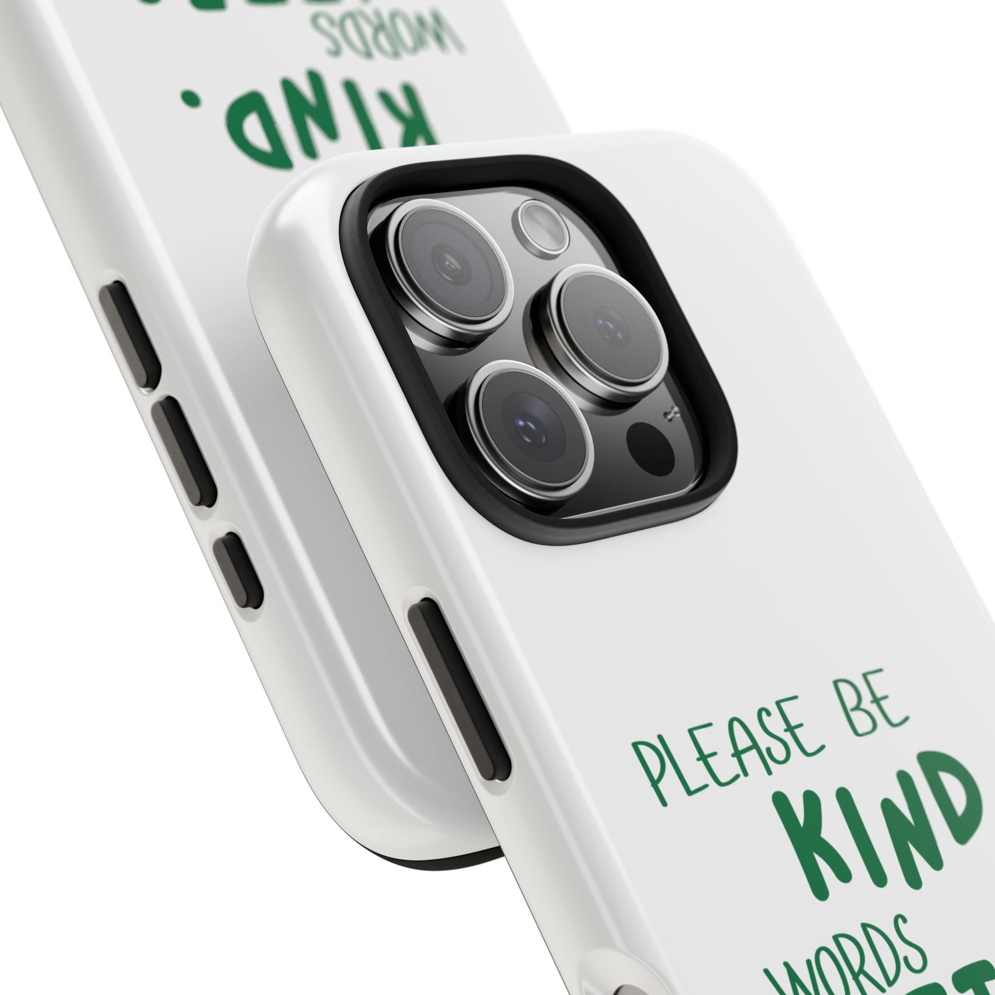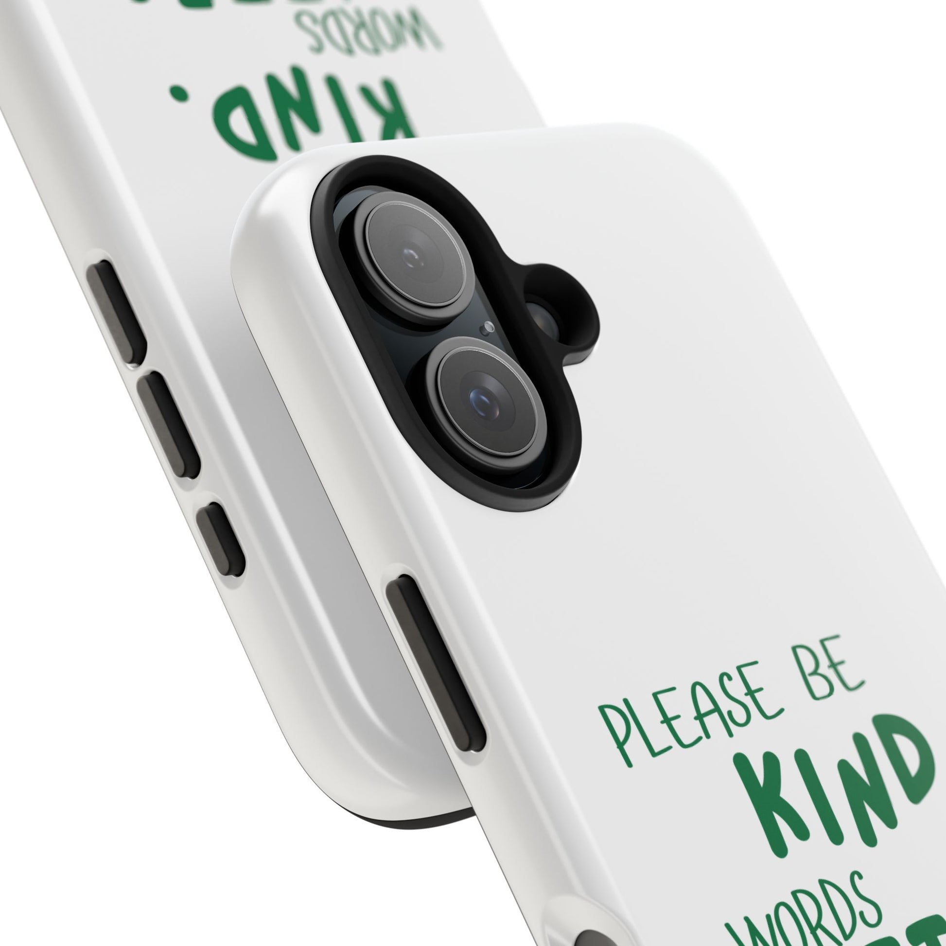 This case doesn’t just protect your phone—it protects the tone of the world around you. Featuring the simple, powerful message “Please be kind. Words matter.”, it is a daily nudge to lead with empathy, speak with care, and make kindness the default.